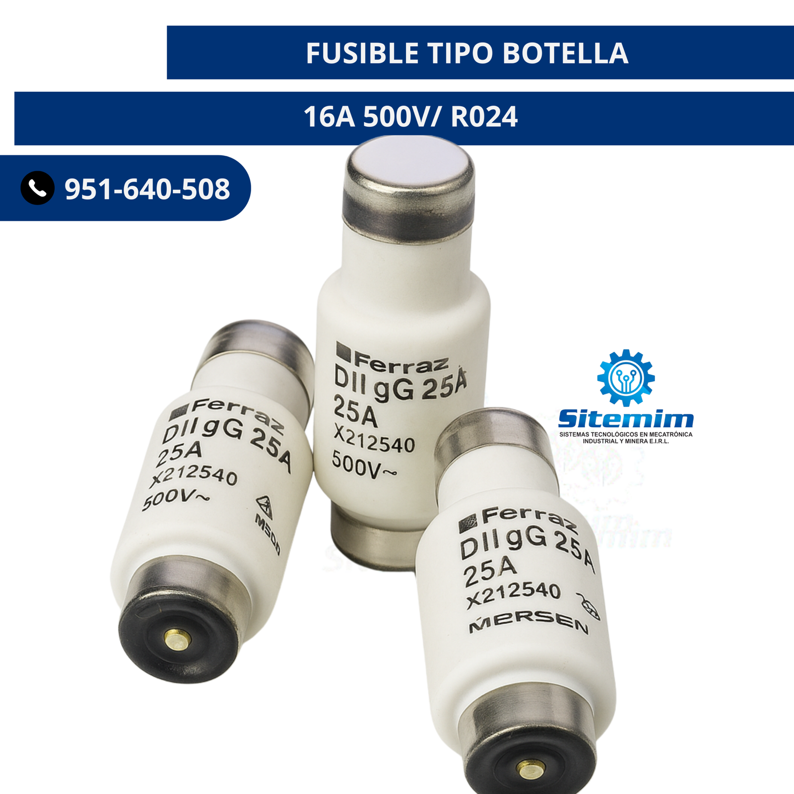 Fusible Tipo Botella R024 16A 500V | Protección Segura en Instalaciones Industriales