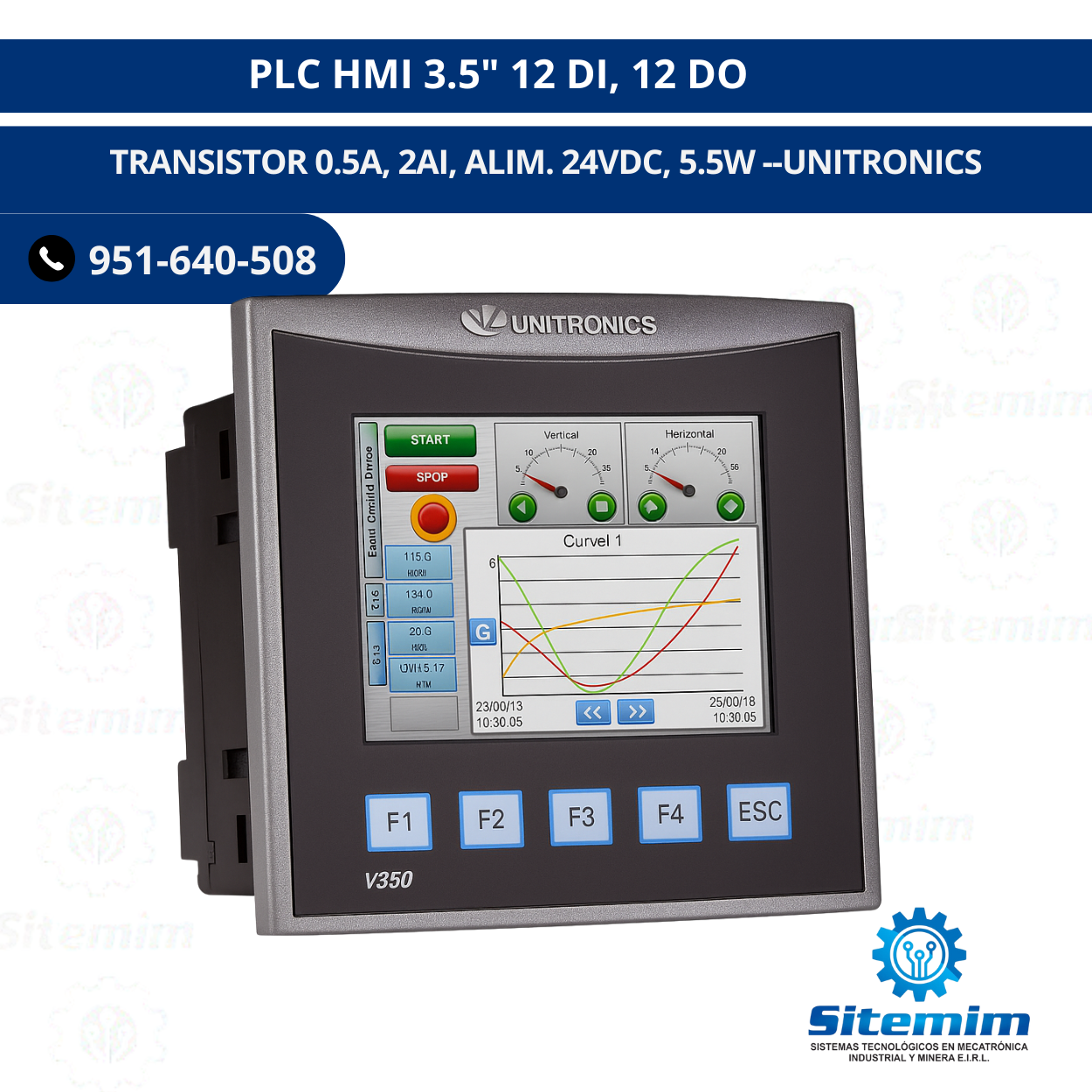 PLC HMI 3.5″ 12 DI, 12 DO TRANSISTOR 0.5A, 2AI, ALIM. 24VDC, 5.5W