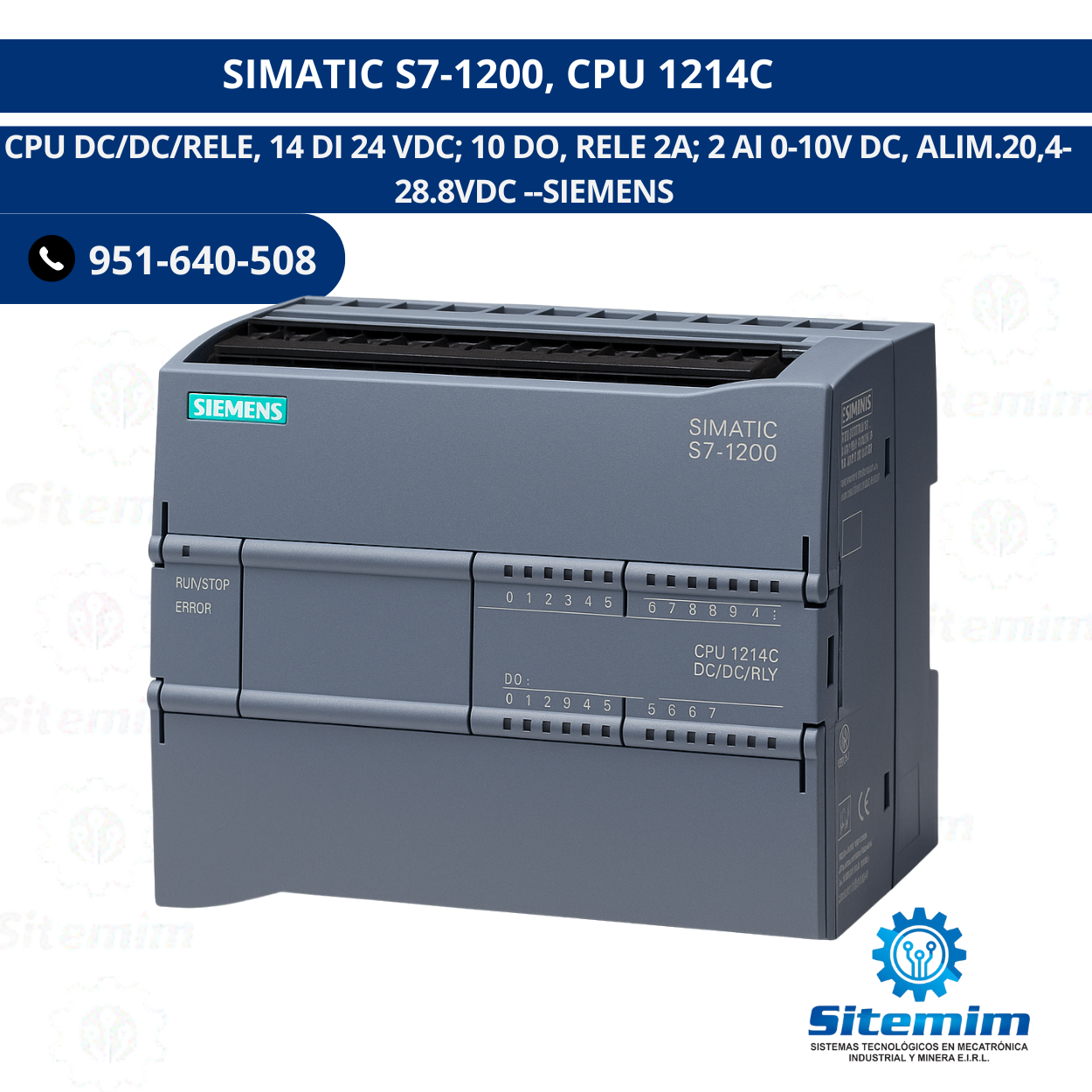 SIMATIC S7-1200, CPU 1214C CPU DC/DC/RELE, 14 DI 24 VDC; 10 DO, RELE 2A; 2 AI 0-10V DC, ALIM.20,4-28.8VDC SIEMENS