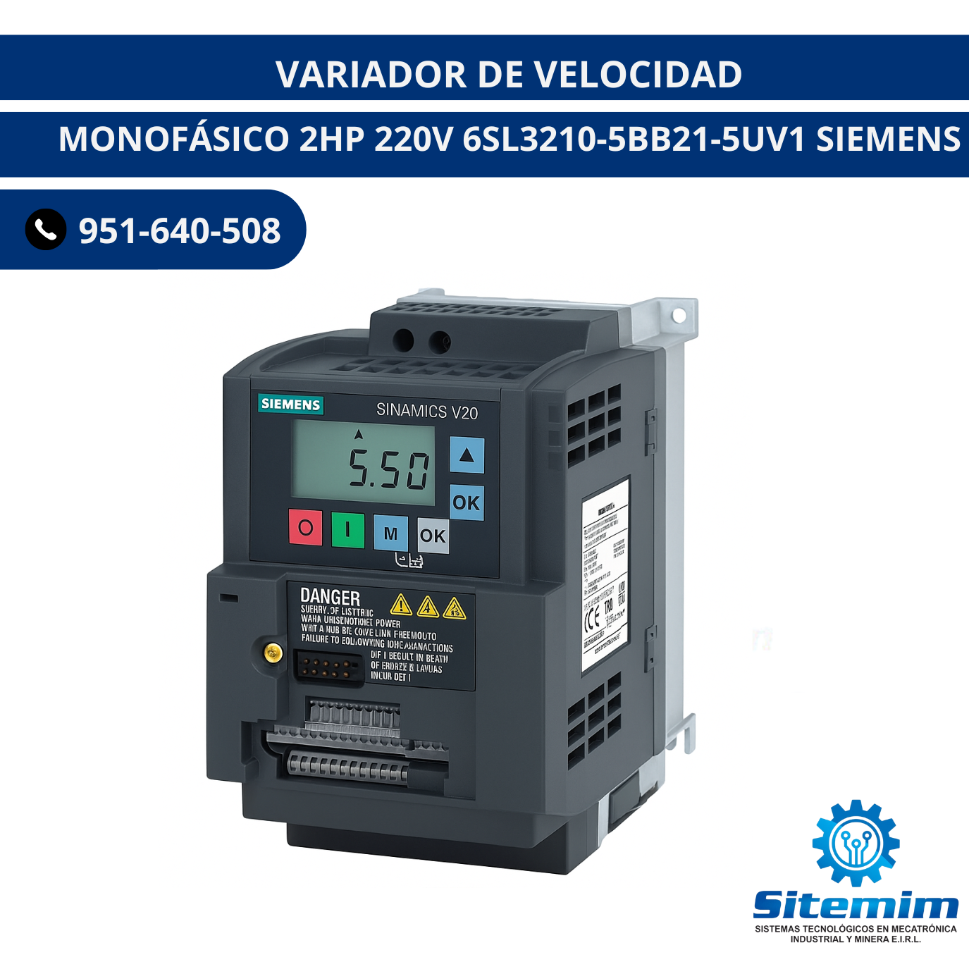 VARIADOR DE VELOCIDAD / MONOFÁSICO 2HP 220V 6SL3210-5BB21-5UV1 SIEMENS
